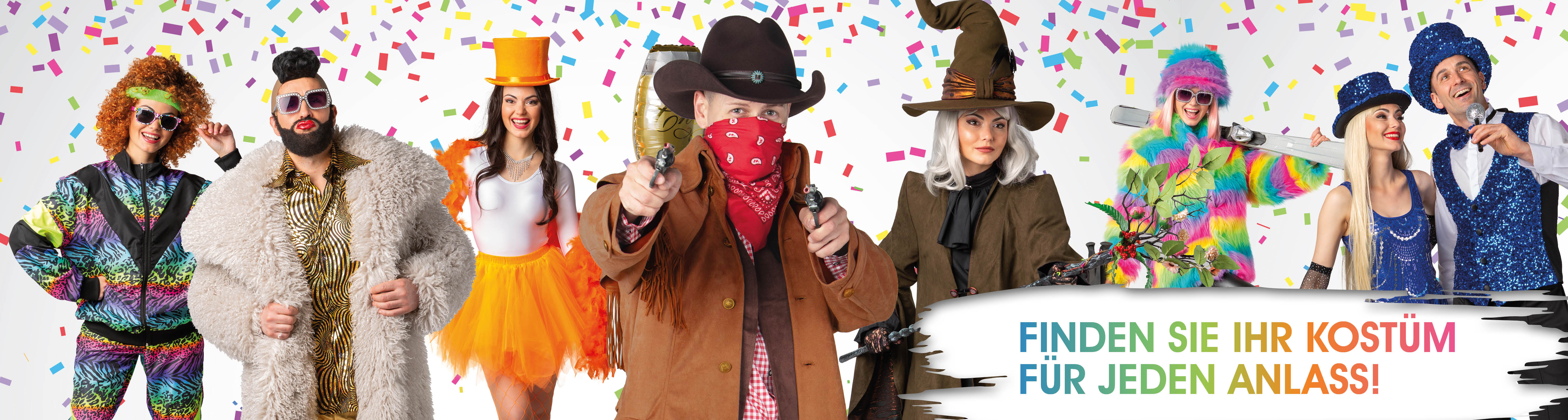 Bei uns finden Sie ein ganzjähriges, qualitatives Sortiment für Karneval/Fasching, Ostern, Festival, Oktoberfest, Halloween, Weihnachten, Mottopartys, Junggesellenabschiede, Mittelalter- und Barockfeste. Es erwarten Sie hochwertige Kostüme, Perücken, Hüte, sowie passendes Zubehör zu vernünftigen Preisen.